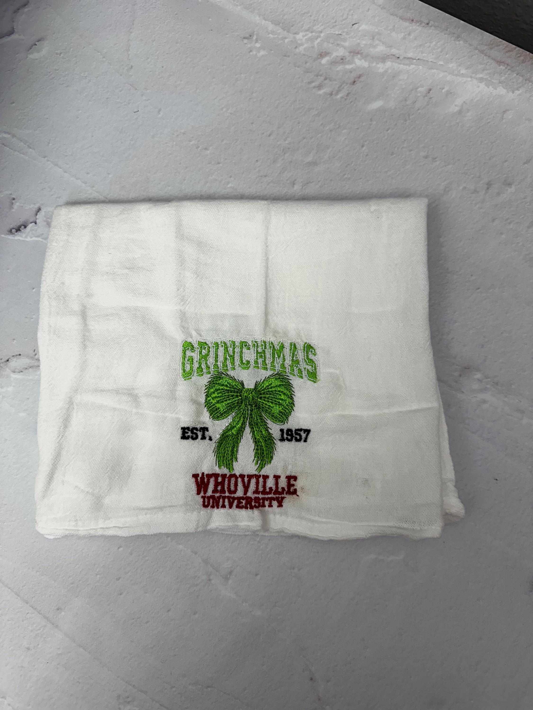 This festive GrinchMas tea towel is the perfect addition to your holiday kitchen decor. Featuring a whimsical design inspired by the beloved Grinch character, it adds a touch of cheer to your Christmas celebrations. Made from high-quality, absorbent fabric, this towel is both practical and decorative, making it an ideal gift for friends and family who appreciate holiday spirit and charm.