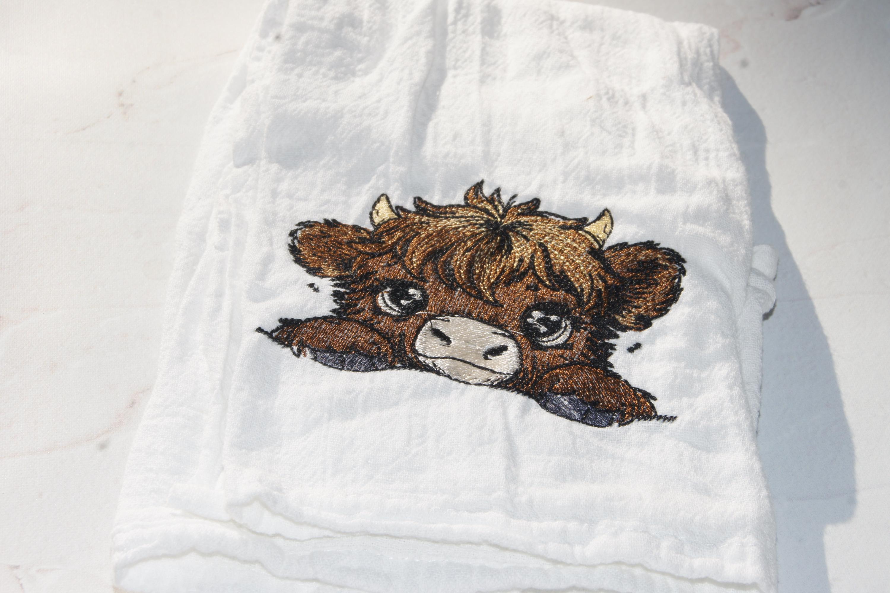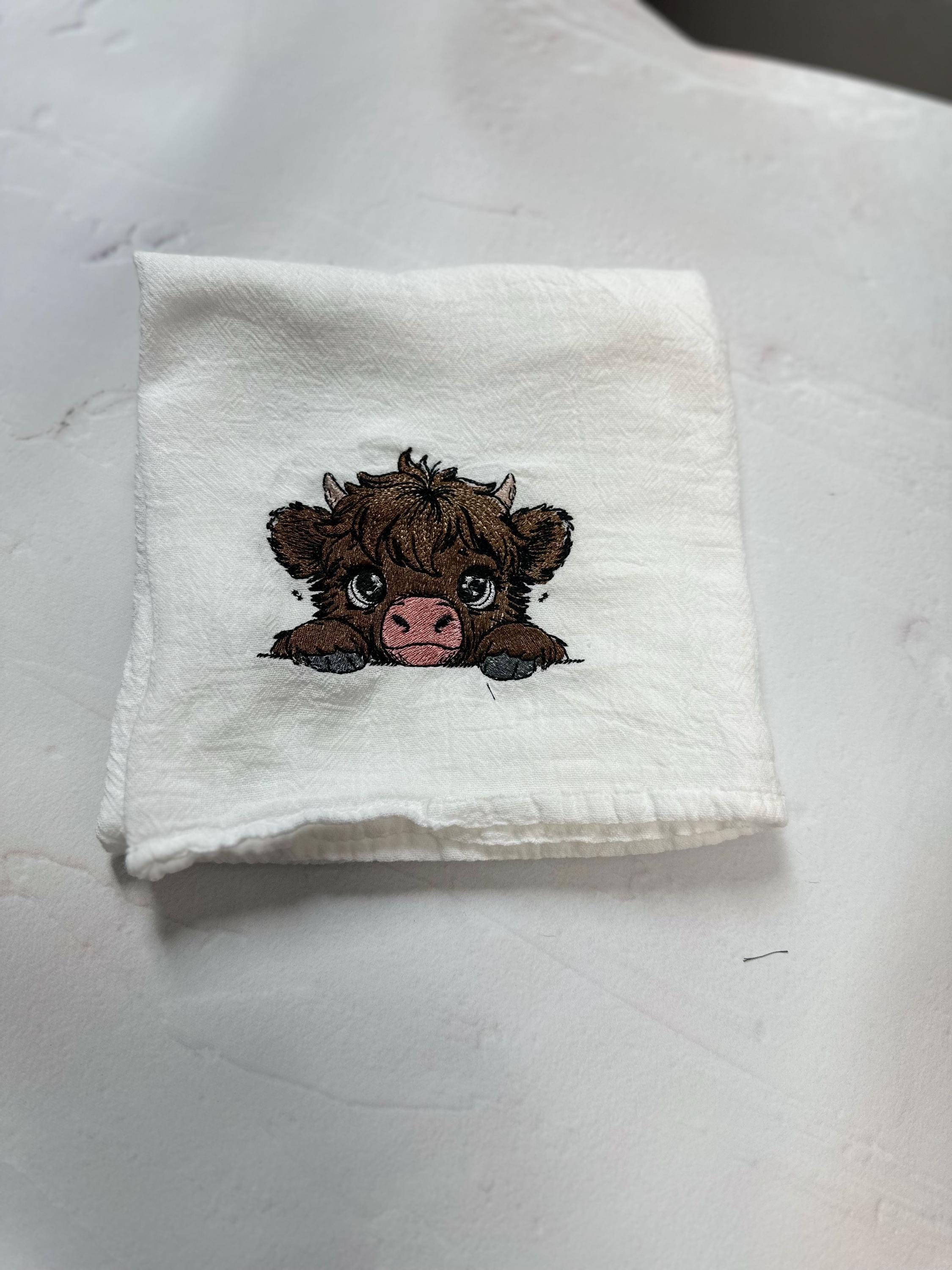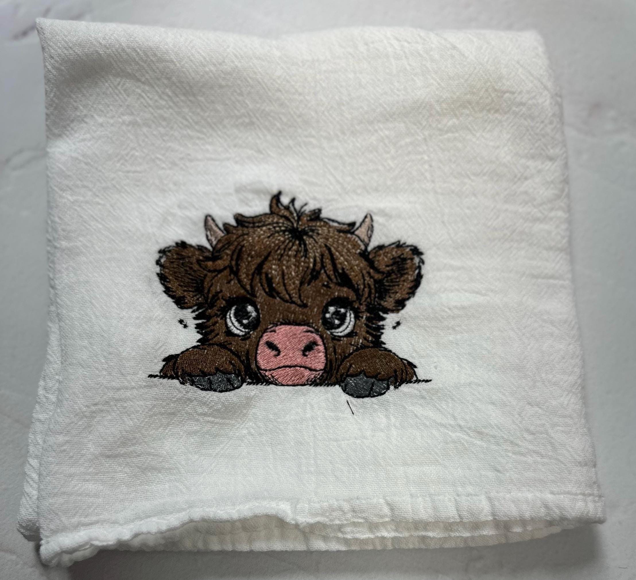 This charming Highland Cow embroidered hand towel is the perfect addition to any kitchen, combining functionality with a touch of rustic elegance. Crafted from high-quality, absorbent cotton, this tea towel not only excels in drying dishes and hands but also serves as a delightful decorative piece that enhances your farmhouse aesthetic. The intricate embroidery of the Highland Cow adds a whimsical yet sophisticated flair, making it an ideal gift for animal lovers, cooking enthusiasts, or anyone who appreciates unique home decor. Whether you're using it for everyday tasks or displaying it as a charming accent, this hand towel is sure to bring warmth and character to your kitchen space. Elevate your culinary experience or surprise a loved one with this delightful and practical gift that embodies the spirit of country living.