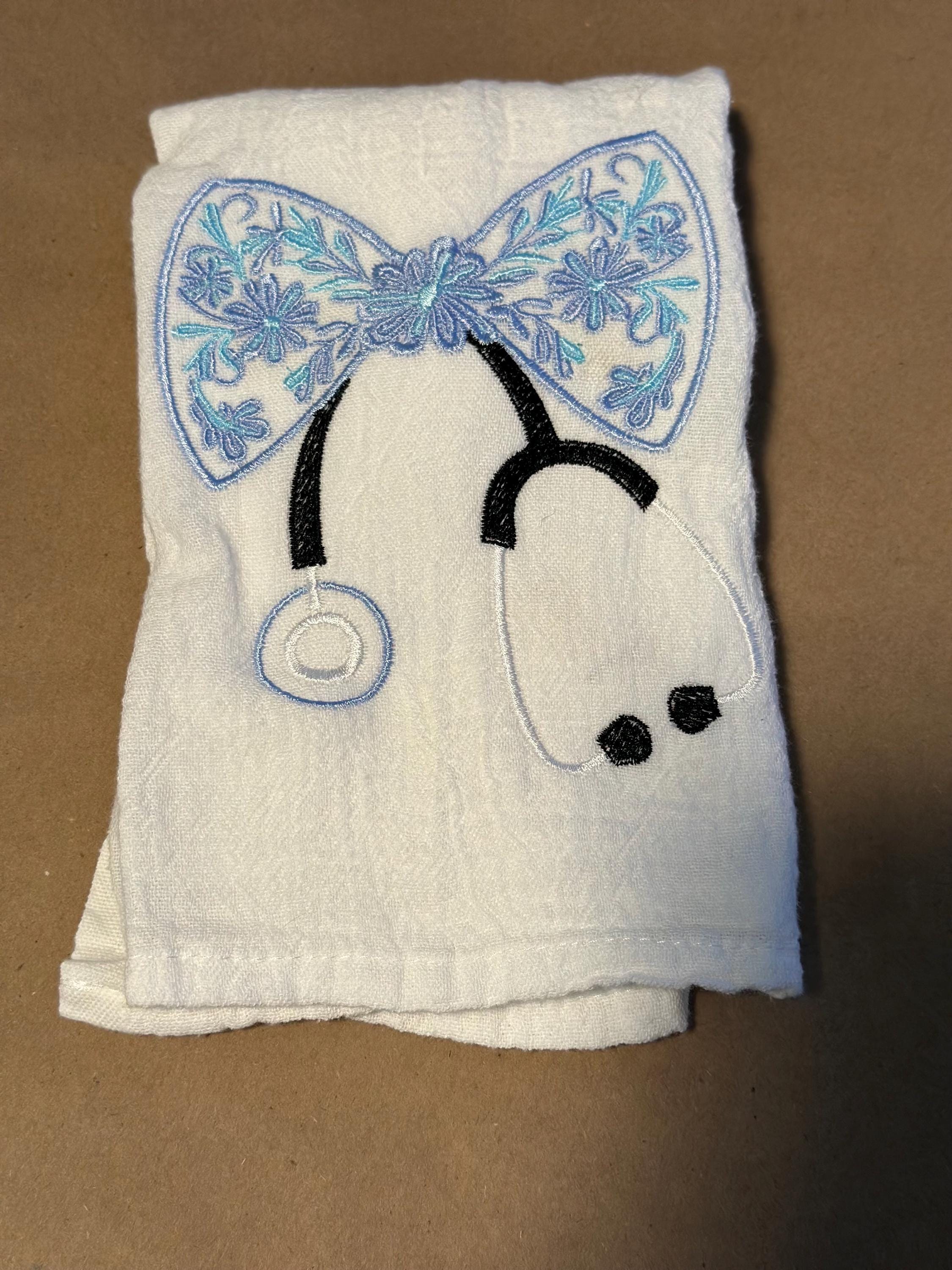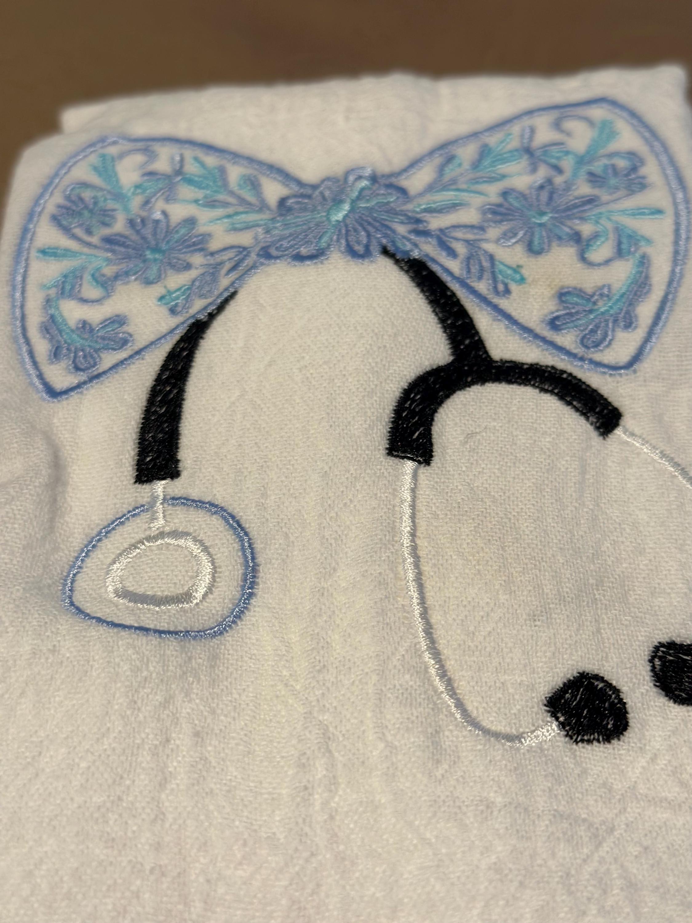 Floral Coquette Stethoscope Bow Tea Towel – Nurse Doctor CNA Gift