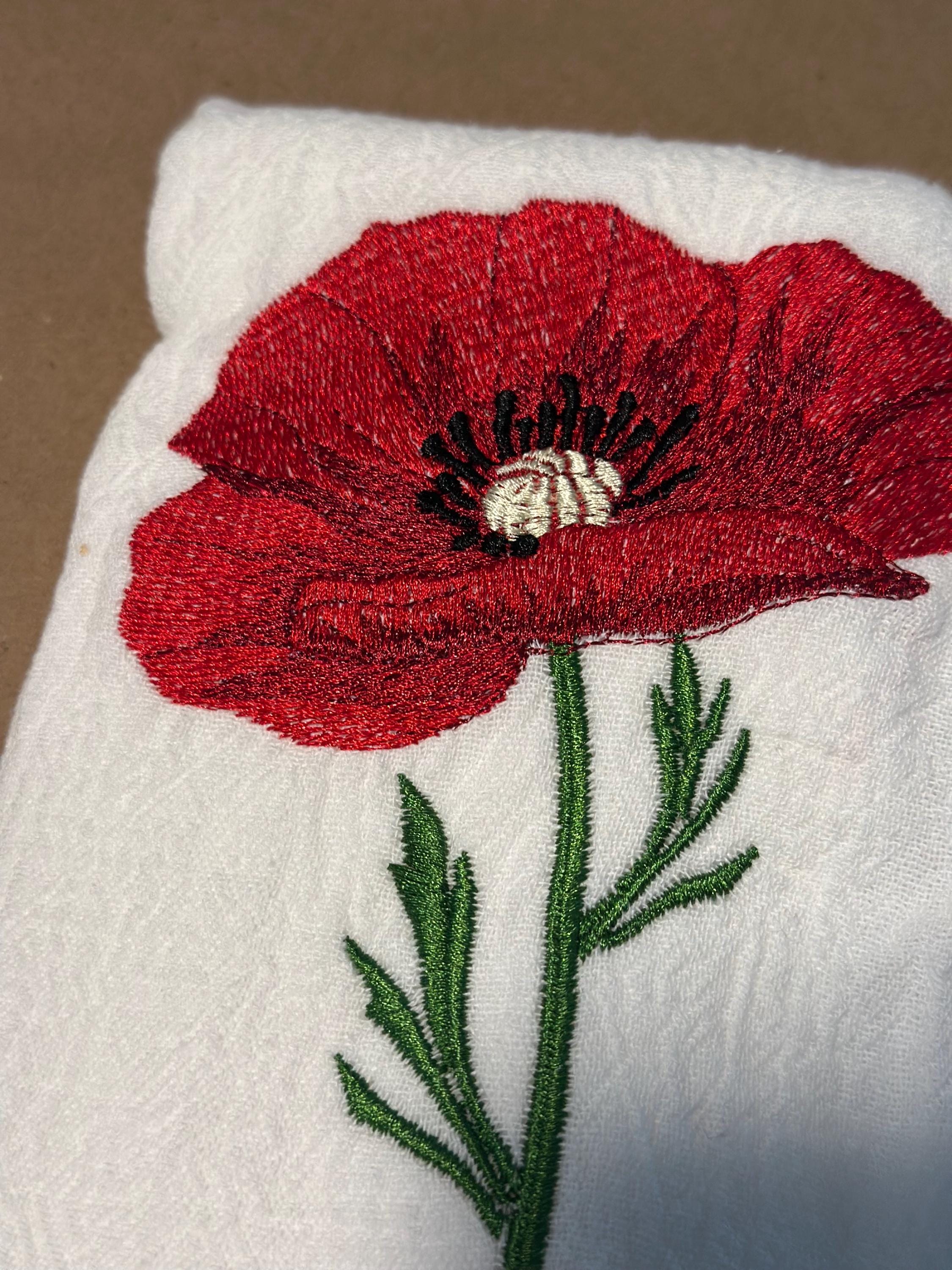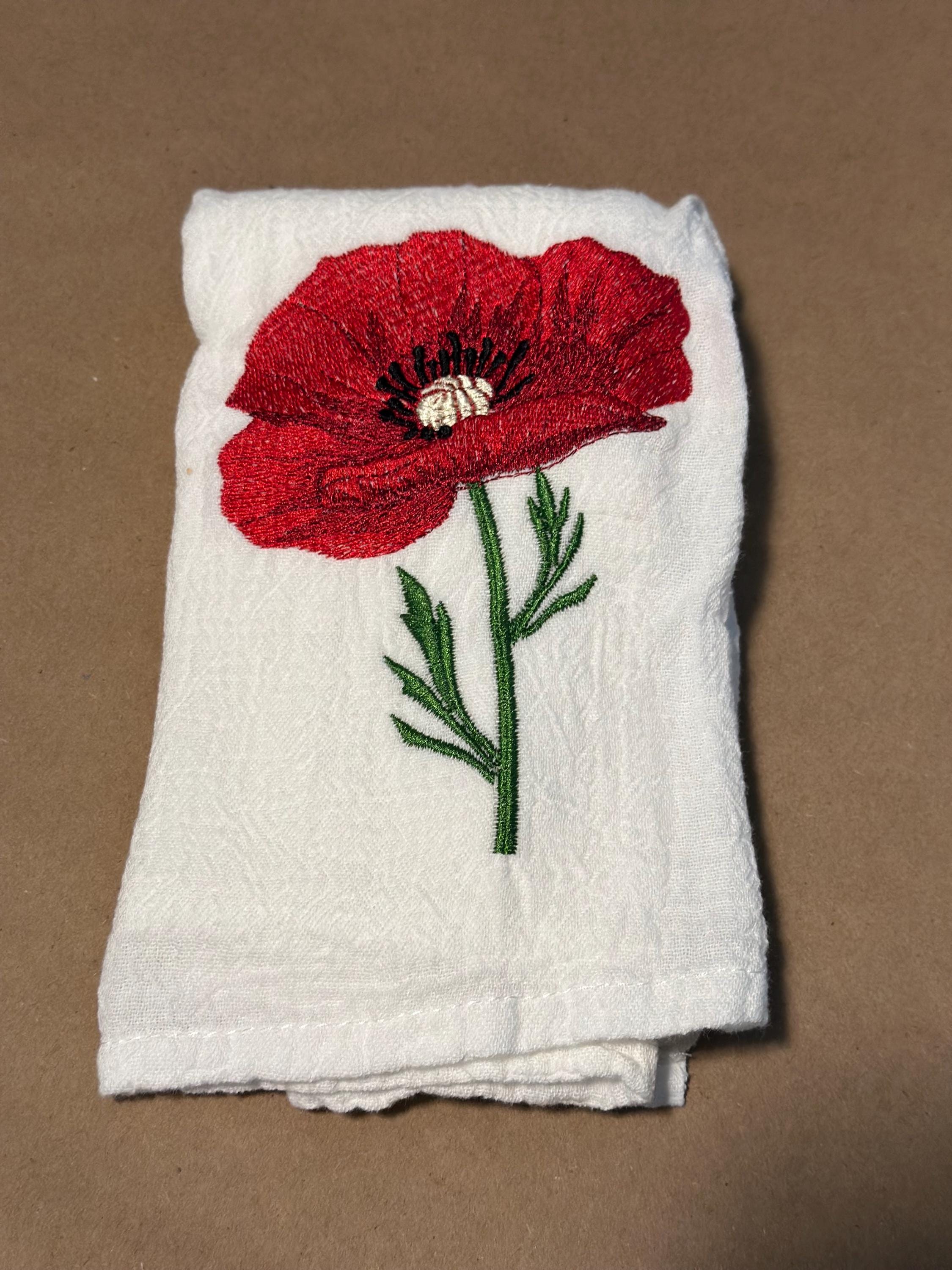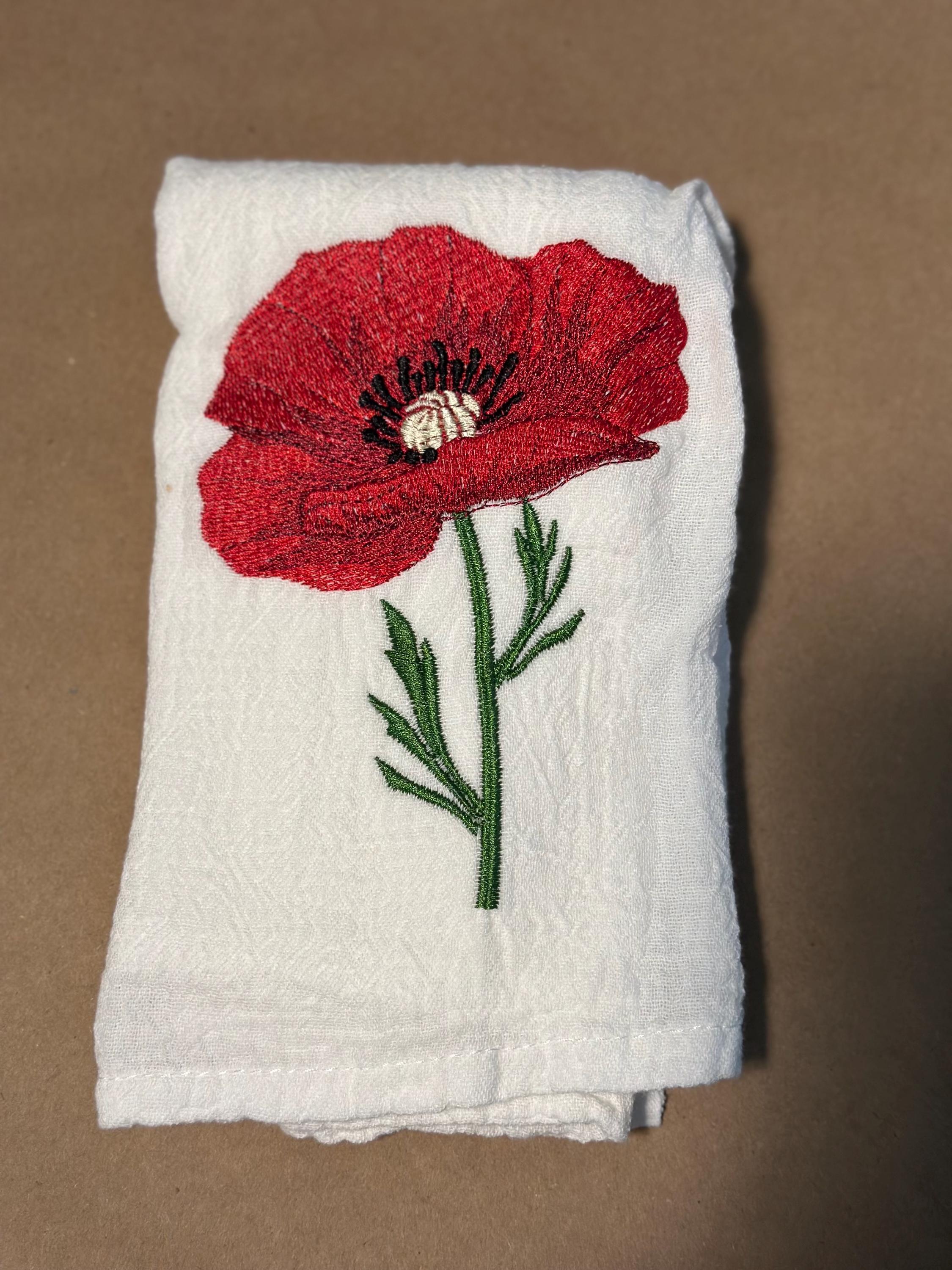 Bring the beauty of nature into your kitchen with this stunning red poppy embroidered tea towel. Featuring a delicately stitched poppy design, this towel adds an elegant floral touch to any space — perfect for gifting or brightening up your own home.