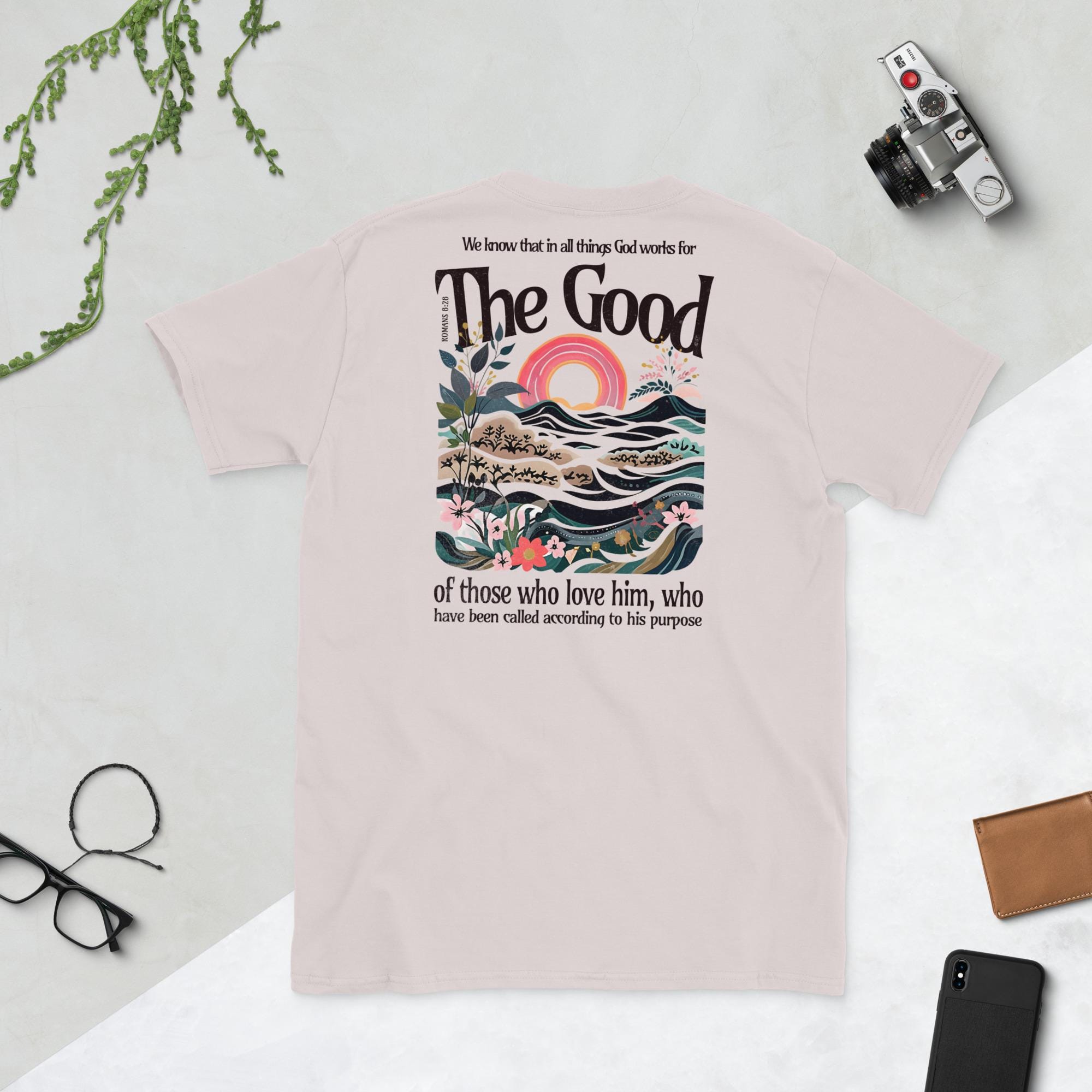 Celebrate your faith with our Romans 8:28 Comfort Colors T-Shirt – a soft, relaxed-fit tee perfect for everyday wear. Featuring the powerful scripture, “And we know that in all things God works for the good of those who love Him” (Romans 8:28), this shirt is a beautiful reminder of God’s promises.